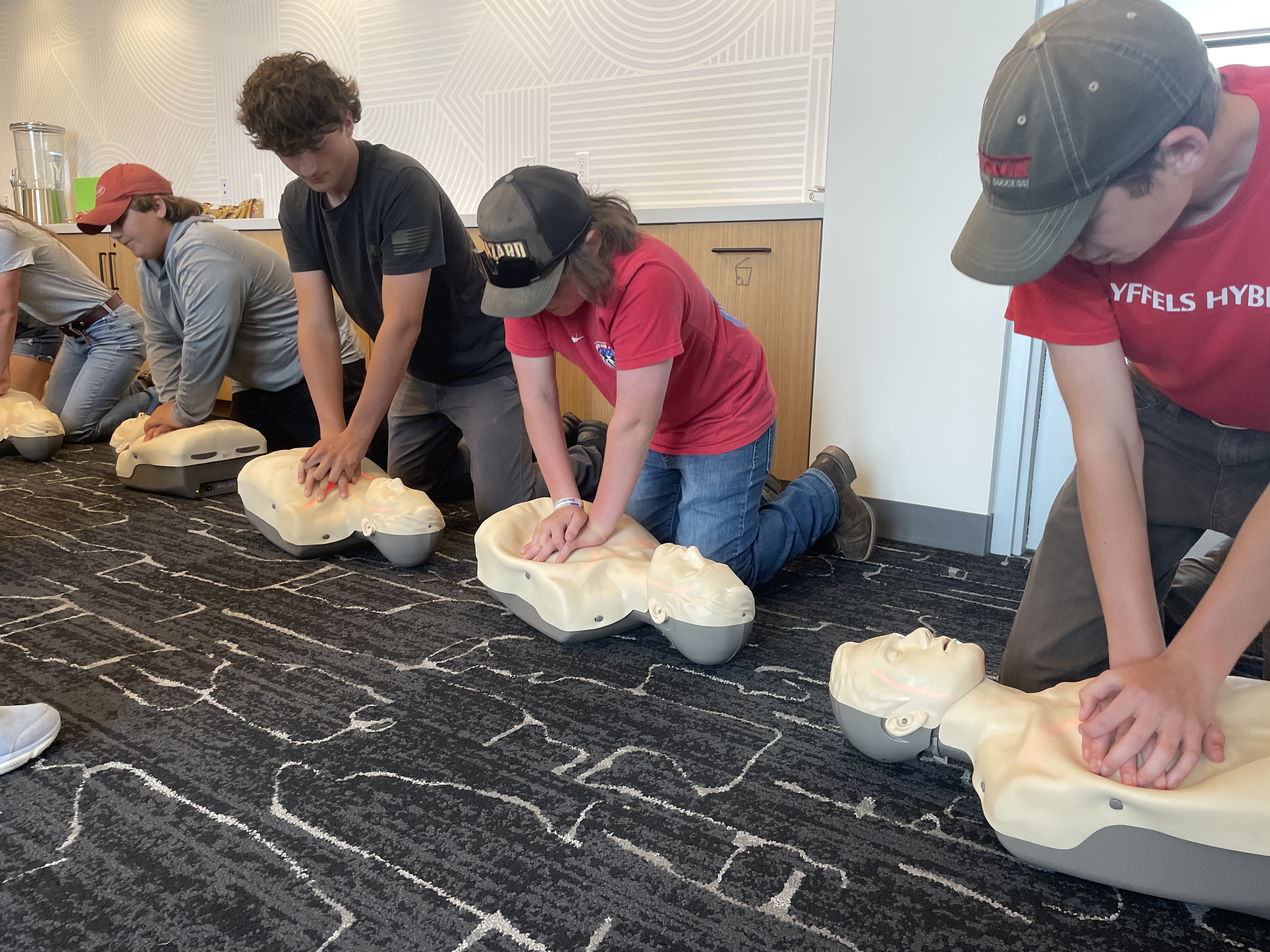 In addition to machinery operation, students received instruction in hands-only CPR and Stop the Bleed, presented by Jenny Blenker, Aspirus Trauma Coordinator, and Hazel Packer of Amherst EMS. These lessons equipped participants with the tools to respond quickly and effectively in emergency situations—skills that are just as vital as safe equipment operation in farm environments.